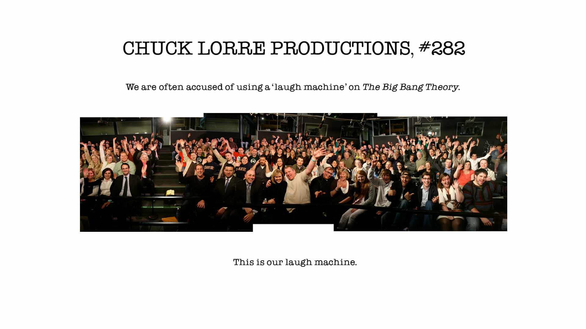 Como muchas sit-coms, The Big Bang Theory utiliza una audiencia en vivo. Esto significa que los aplausos que alguna vez se escuchan y las risas, son reales. Pero este público es particular: está constituído exclusivamente por estudiantes del Instituto Tecnológico de California (Caltech), institución en la que trabajan Howard, Raj, Sheldon y Leonard.