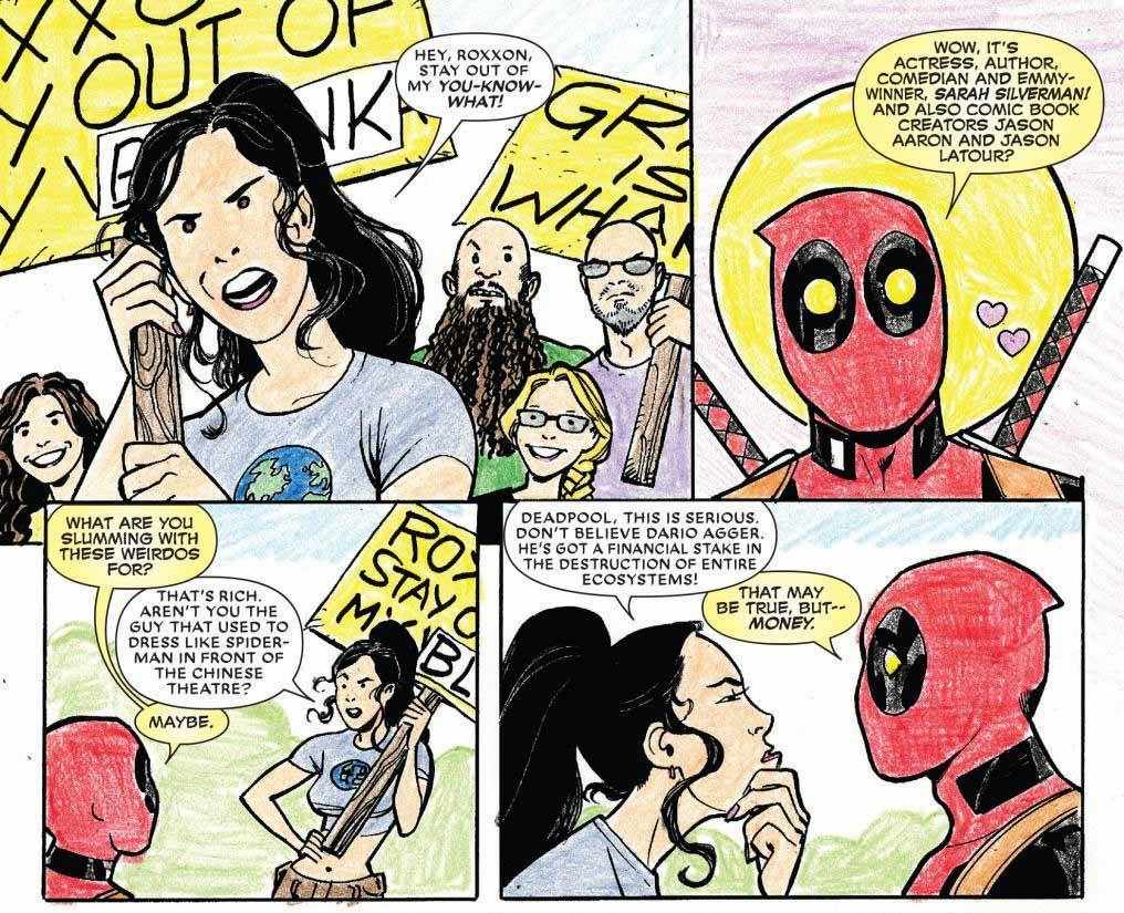 DATO: Vale destacar que el personaje de las viñetas habituado a romper la cuarta pared para sostener interpelaciones directamente sus creadores o lectores/espectadores, esta perdidamente enamorado de la comediante Sarah Silverman.