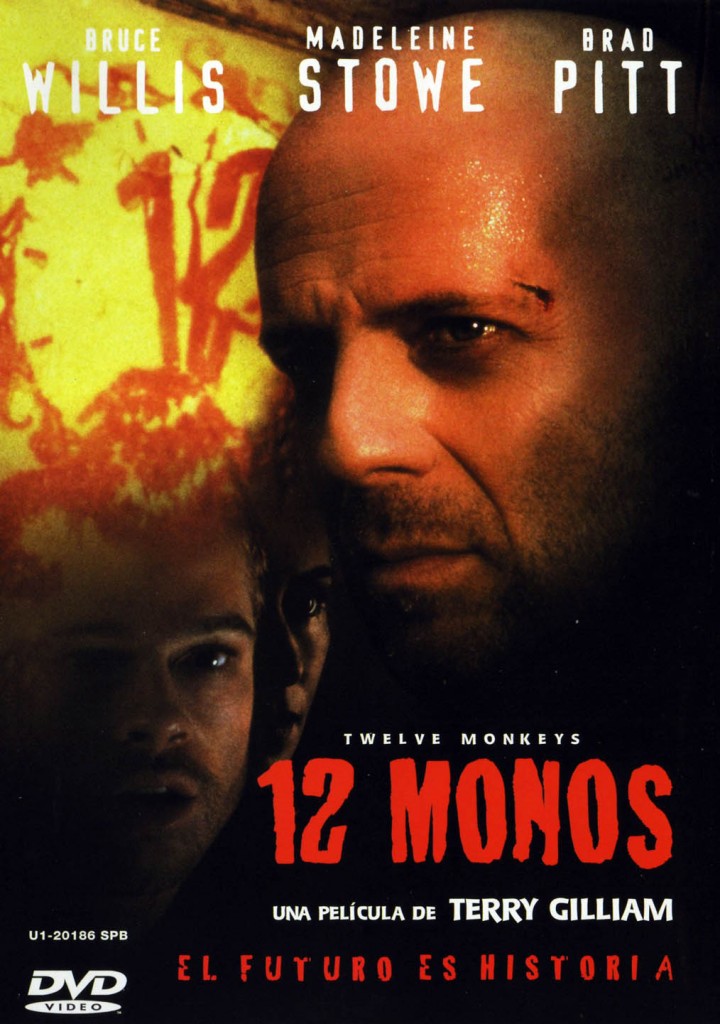 El guión de 12 Monkeys fue inspirado en el cortometraje de 1962 de Chris MarkerLa Jetée'(El Muelle). La película de Gilliam se desarrolla en el año 2035, tras el azote de un virus asesino que asola la Tierra matando a miles de millones de personas y donde los supervivientes se refugian en comunidades subterráneas, húmedas y frías. El prisionero James Cole (interpretado por Bruce Willis en la cinta original) se ofrece como “voluntario” para viajar al pasado y conseguir una muestra del virus, gracias a la cual los científicos podrán elaborar un remedio. Durante el viaje conoce a una bella psiquiatra y a Jeffrey Goines, un excepcional enfermo mental. Cole trata entonces de encontrar al Ejército de los 12 Monos, un grupo radical vinculado a la mortal enfermedad.