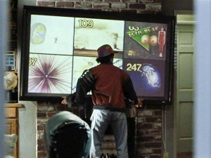 La residencia McFly tiene una enorme televisión de pantalla plana donde Marty (1985) puede ver varios canales a la vez.