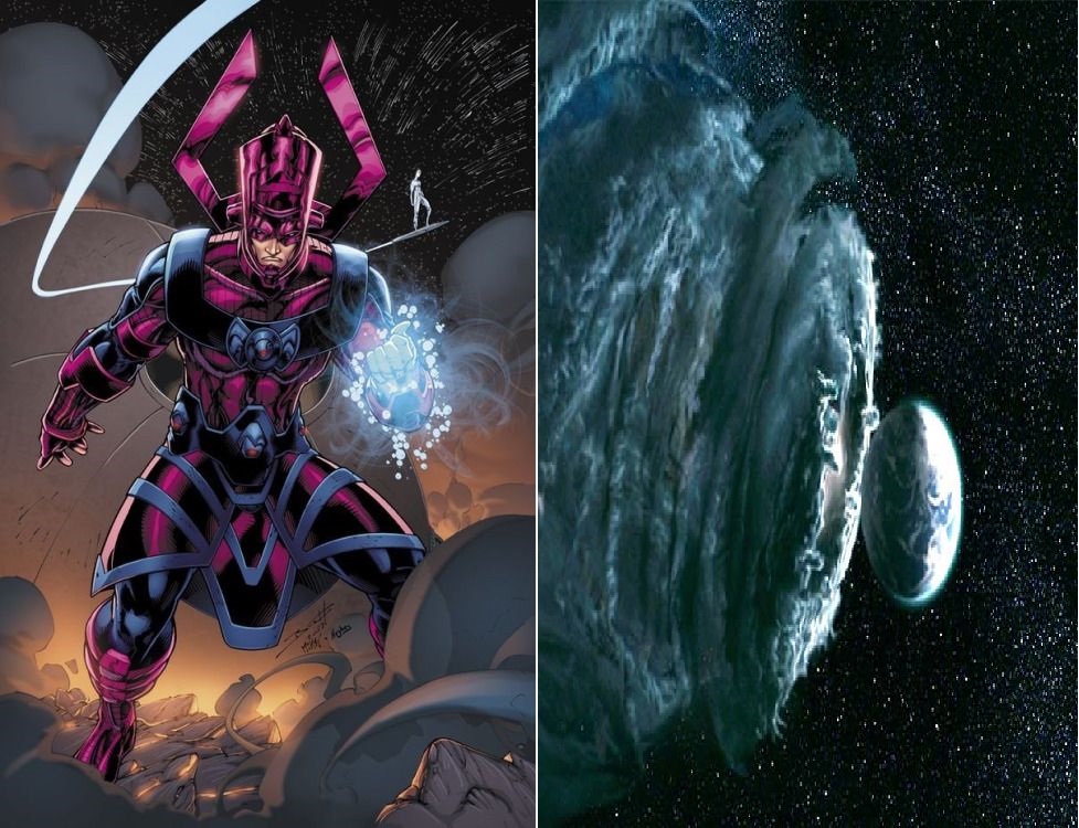 Pero ahora bien, eso no fue lo peor de todo. Lo peor de todo fue transformar un majestuoso, gigante y aterrador ente cósmico superpoderoso en una atemorizante ¿neblina?. El Galactus clásico es un gigante de unos variables 8 metros de estatura cuyas lineas de dialogo generalmente expresan lo hambriento que está y las ganas que tiene de comerse un planeta entero. En su caso esto es literal lo cual, resulta atemorizante. En su lugar (creemos que por una cuestión de efectos especiales y de simpleza argumental) el gigante es reemplazado por una neblina en plan Pac-Man. Sin palabras. Fin de la franquicia.