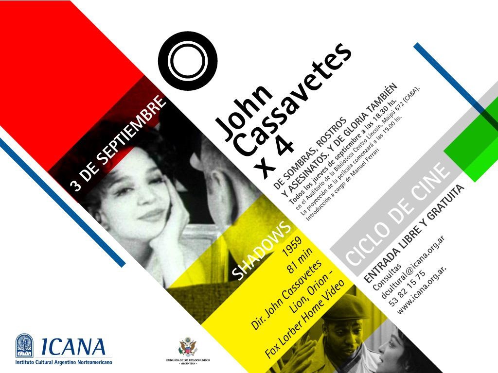 ICANA (Instituto Cultural Argentino Norteamericano) en colaboración con la Embajada de los Estados Unidos organizaron un ciclo dedicado a John Cassavetes. El mismo se realizará todos los jueves de septiembre a las 18.30 hs. Se proyectarán cuatro películas fundamentales del director estadounidense en el Auditorio de la Biblioteca Centro Lincoln, Maipú 672 (CABA).