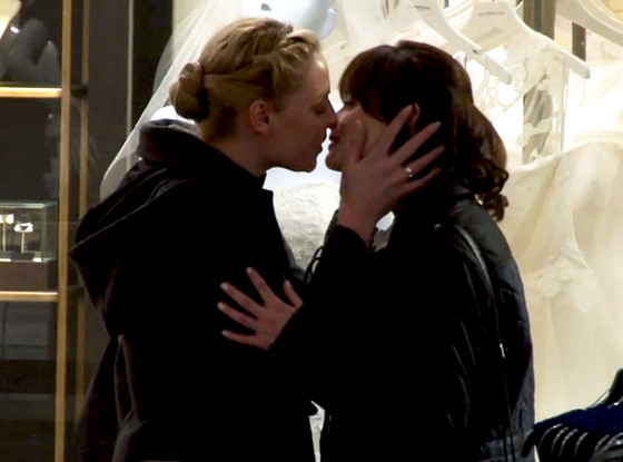 A continuación te mostramos una de las nuevas imágenes del film donde se puede ver a la protagonistas besándose frente a una tienda de vestidos de novia.