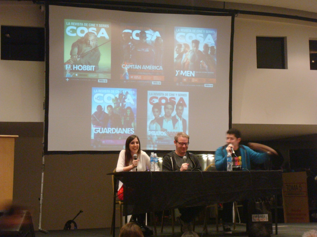 Luego nos dedicamos a presenciar lo que sería LA conferencia del día brindada por el staff de La Cosa Cine. Allí Fiorella Sargenti (editora periodística), Lucas Baini (redactor y uno de los responsables de las redes sociales de La Cosa) y Axel Kuschevatzky (creador de La Cosa) brindaron un panel sobre el proceso de selección de los temas que luego conforman la tapa de cada edición de la revista. Además se eligieron las 5 mejores tapas del año, y la gran favorita fue la de Guardianes de la galaxia. Por otro lado, en uno de los momentos más graciosos de la tarde, Sargentin y Baini se mofaron del precario diseño de las primeras tapas, allá por 1996 de La Cosa.