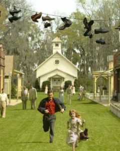 El simbolismo de “colgar los zapatos” quedará demostrado al final de la película, cuando Will le cuenta a su padre la historia de su muerte: cuando llegan al río y se encuentran con todos los personajes de la vida de Edward, Josephine (Marion Cotillard) cuelga los zapatos de Edward, confirmando así el final de su camino.